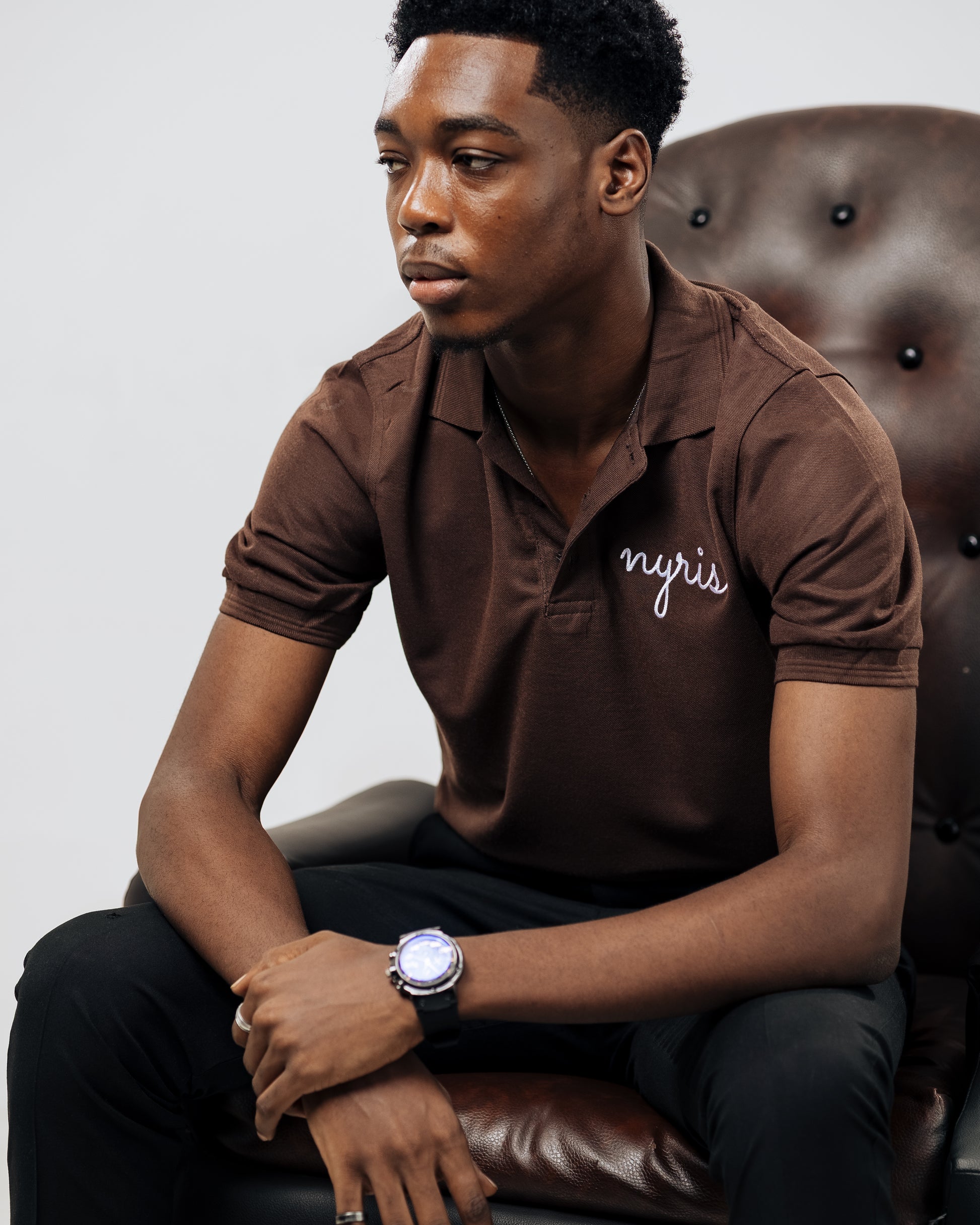 The LATÉ M-PO1 is a refined cotton polo crafted for the discerning man. Its rich chocolate brown hue offers versatile styling in corporate and casual settings while layered for polished sophistication.